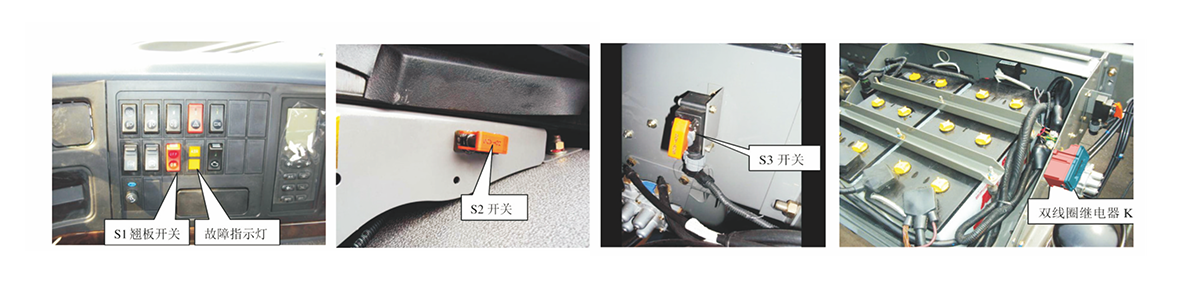 主電源緊急總開關(guān)系統(tǒng),主要包括 ADR控制盒(內(nèi)部包含K1電源開關(guān)、集成ECU控制板、大功率保險)和 S1一般運行開關(guān), S2駕駛室內(nèi)開關(guān), S3駕駛室外開關(guān)。